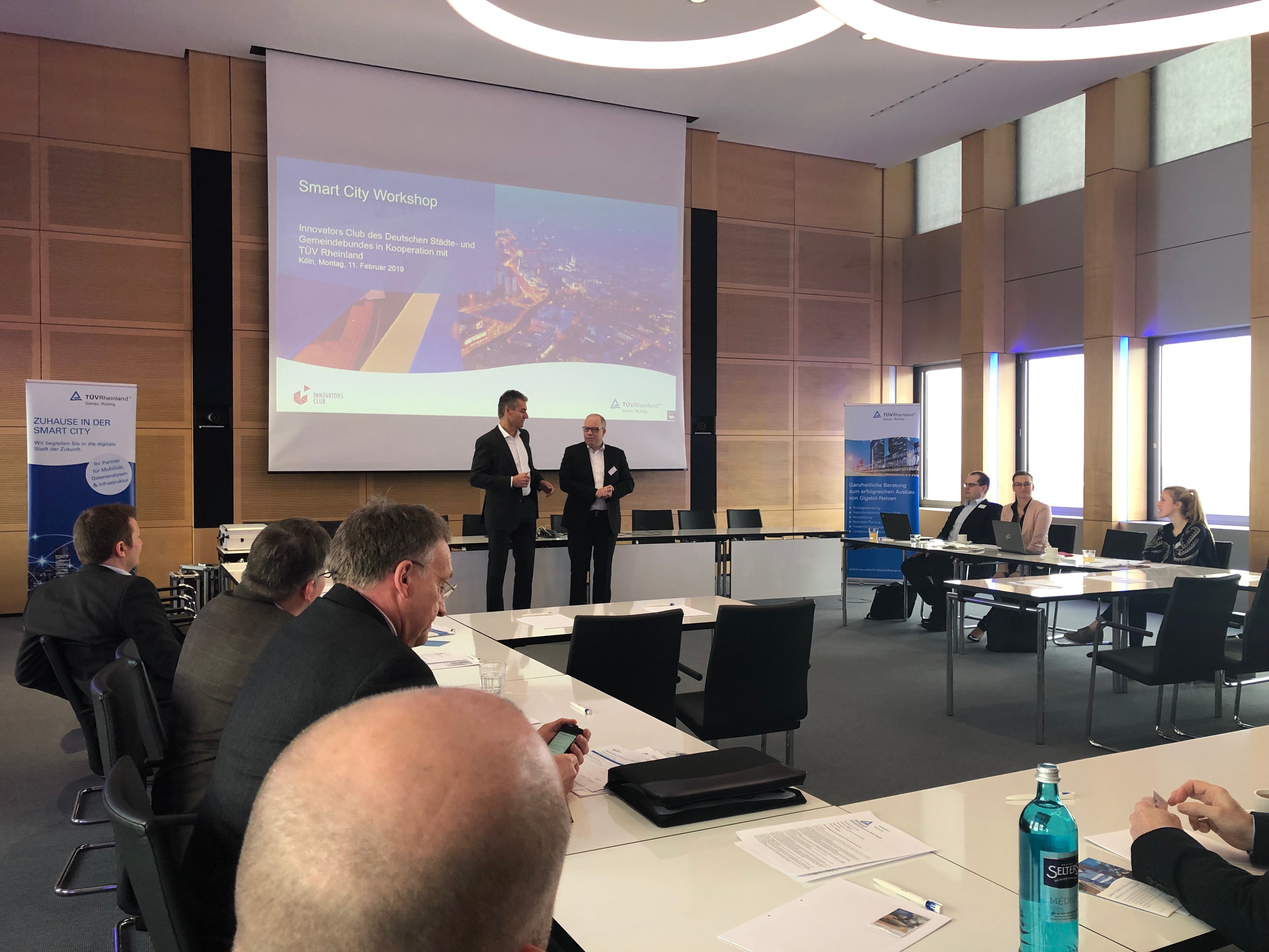 31.10.2019Smart city Smart City Workshop31.10.2019Im Rahmen der Smart Country Convention in Berlin vom 22.bis 24.10.2019 veranstaltete der Innovators Club des Deutschen Städte- und Gemeindebundes gemeinsam mit dem TÜV Rheinland einen „Smart-City-Workshop“.Mehr